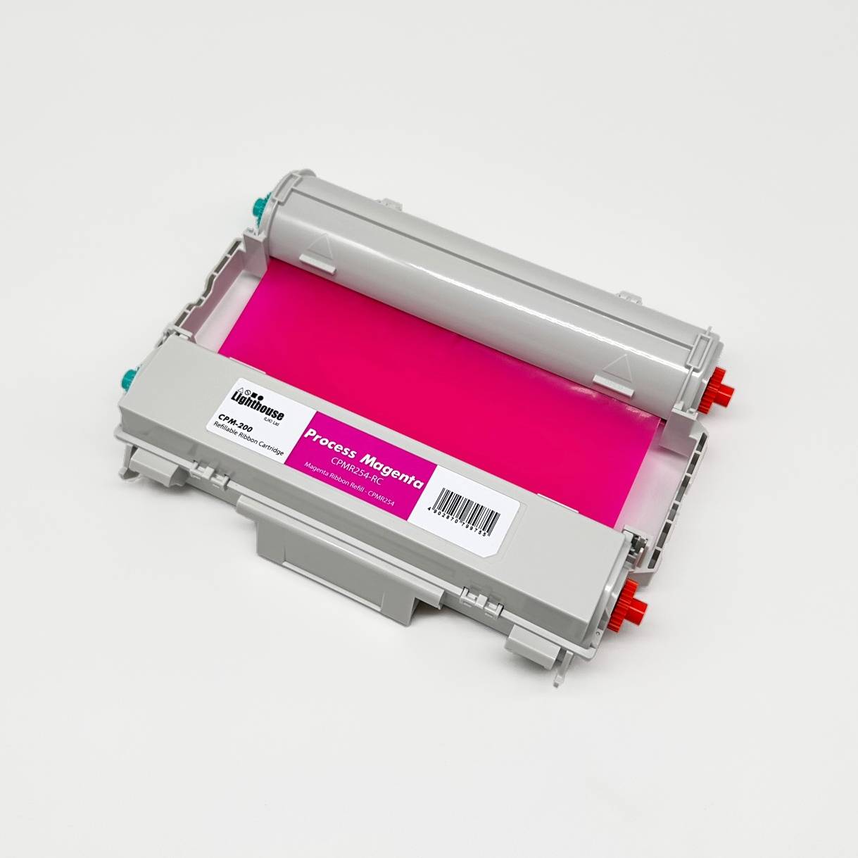 Refillable plastic ribbon cartridge, including a 50 metre process magenta resin ribbon (CPMR254).